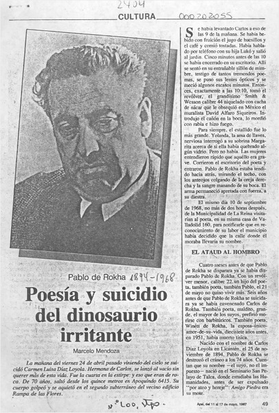 Poesía y suicidio del dinosaurio irritante [artículo] Marcelo Mendoza.