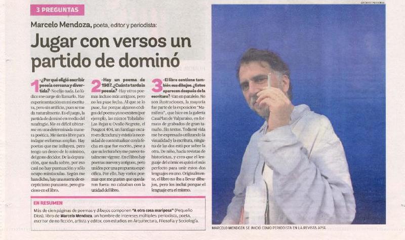 Autores chilenos - Entrevistas - Mendoza, Marcelo - A otra cosa mariposa