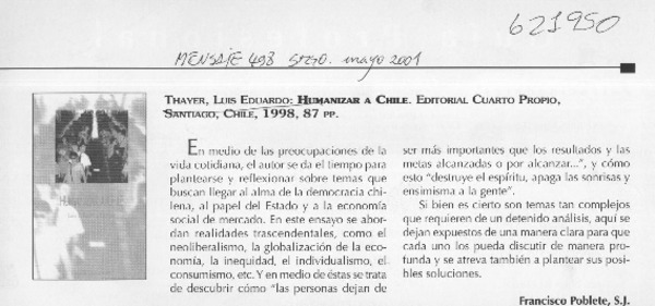 Autores chilenos - Thayer, Luis Eduardo - Humanizar a Chile
