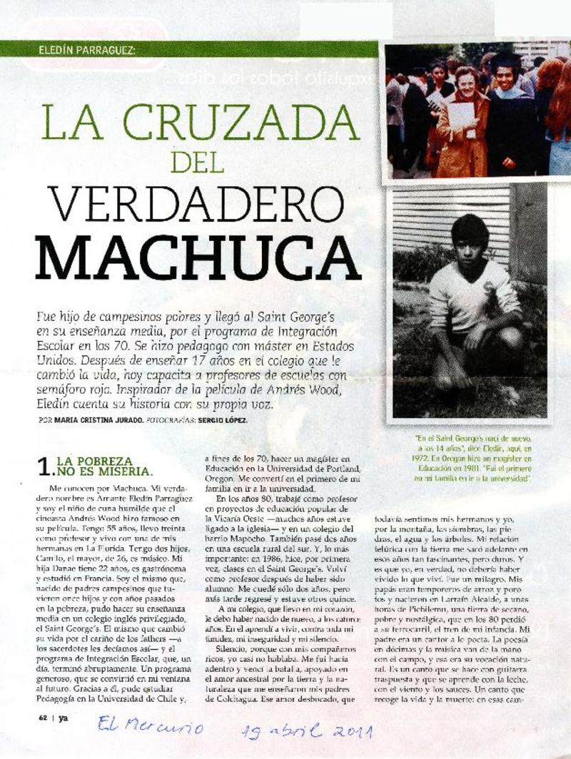 La cruzada del verdadero Machuca (entrevista) [artículo] María Cristina Jurado.