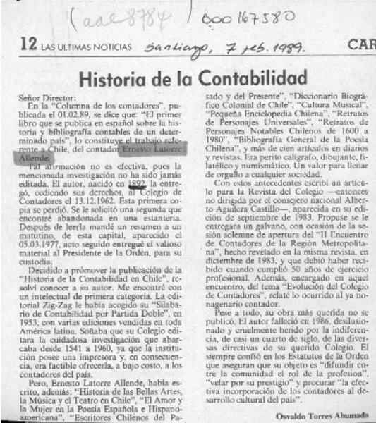 Historia de la contabilidad [artículo] Osvaldo Torres Ahumada.