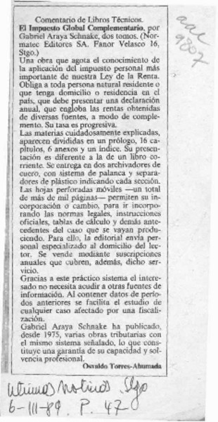 "El Impuesto Global Complementario" [artículo] Osvaldo Torres-Ahumada.