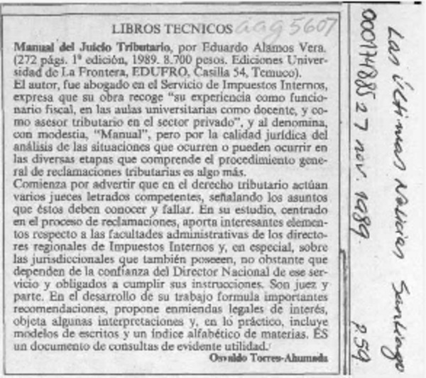 Libros Técnicos [artículo] Osvaldo Torres Ahumada.