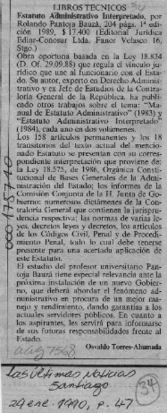 Estatuto Administrativo Interpretado [artículo] Osvaldo Torres-Ahumada.