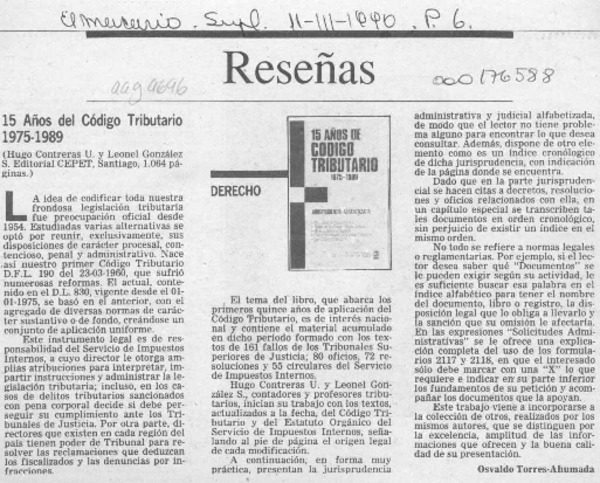 CONTRERAS U., HUGO - GONZALEZ S., LEONEL - 15 AÑOS DE CODIGO TRIBUTARIO 1975-1989