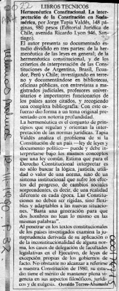 Hermenéutica constitucional, la interpretación de la Constitución en Sudamérica [artículo] Osvaldo Torres-Ahumada.