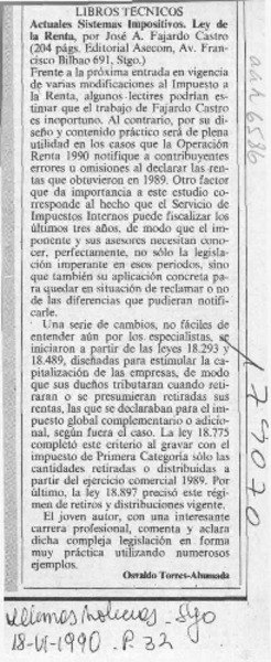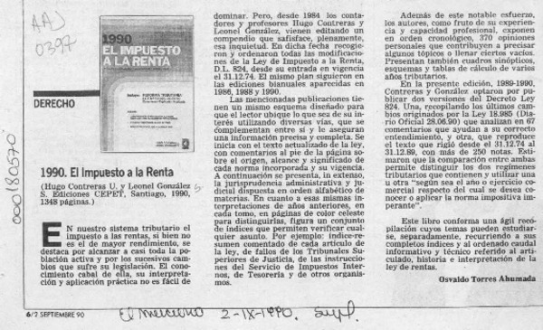 1990, El impuesto a la renta [artículo] Osvaldo Torres Ahumada.