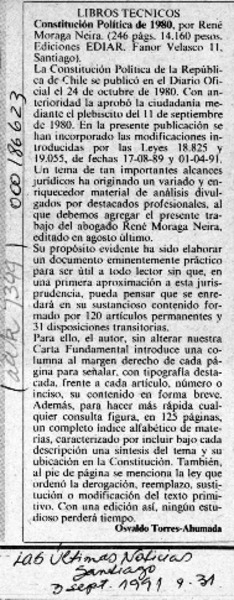 Constitución política de 1980 [artículo] Osvaldo Torres Ahumada.