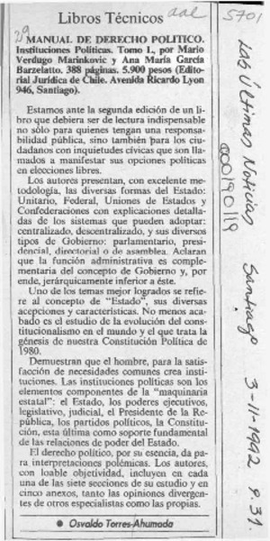 VERDUGO MARINKOVIC, MARIO - GARCIA BARZELATTO, ANA MARIA - MANUAL DE DERECHO POLITICO