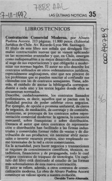 Contratación comercial moderna [artículo] Osvaldo Torres-Ahumada.