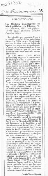 Ley Orgánica Constitucional de Municipalidades [artículo] Osvaldo Torres-Ahumada.