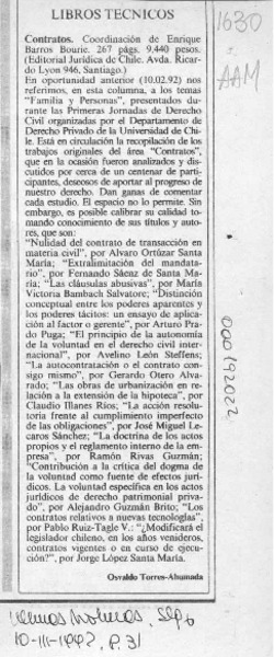 Contratos [artículo] Osvaldo Torres-Ahumada.
