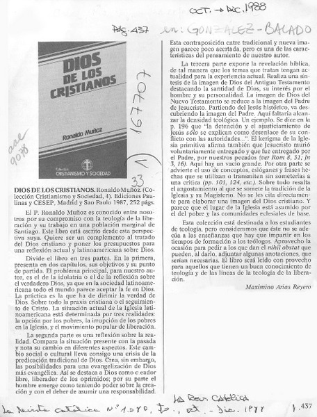 Dios de los cristianos [artículo] Maximino Arias Reyero.