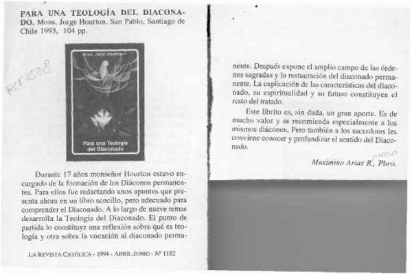 Para una teología del diaconado [artículo] Maximino Arias R.