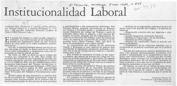 Institucionalidad laboral [artículo] Francisco Walker E.