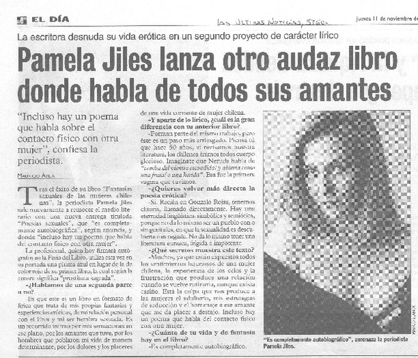 Entrevistas - Jiles, Pamela - Autoras chilenas - Poesías sexuales