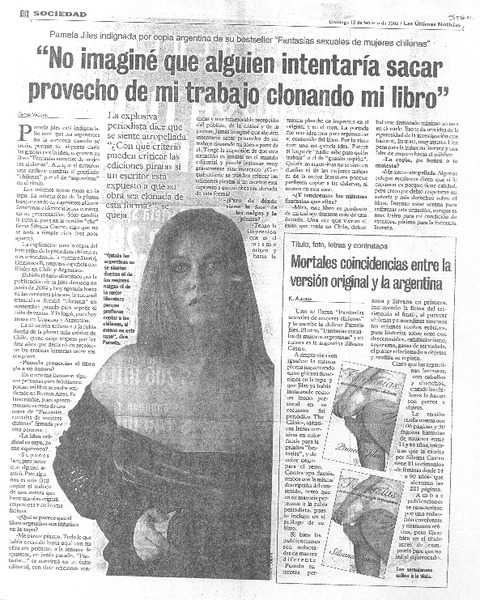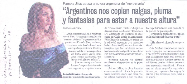 "Argentinos nos copian nalgas, pluma y fantasías para estar a nuestra altura". (entrevistas) [artículo] Pamela Jiles