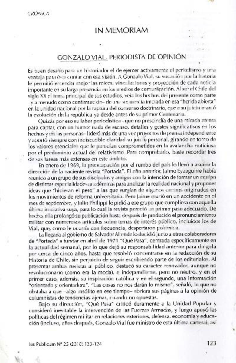 In memoriam. Gonzalo Vial, periodista de opinión [artículo] Jaime Martínez Williams.