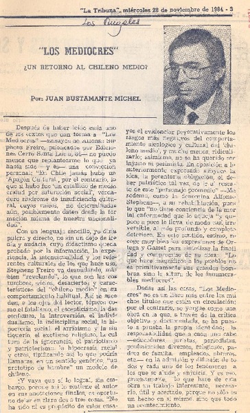 Los mediocres" [artículo] Juan Bustamante Michel.