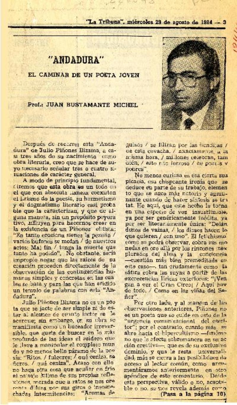 El oficio de un poeta nuestro [artículo] Juan Bustamante Michel.