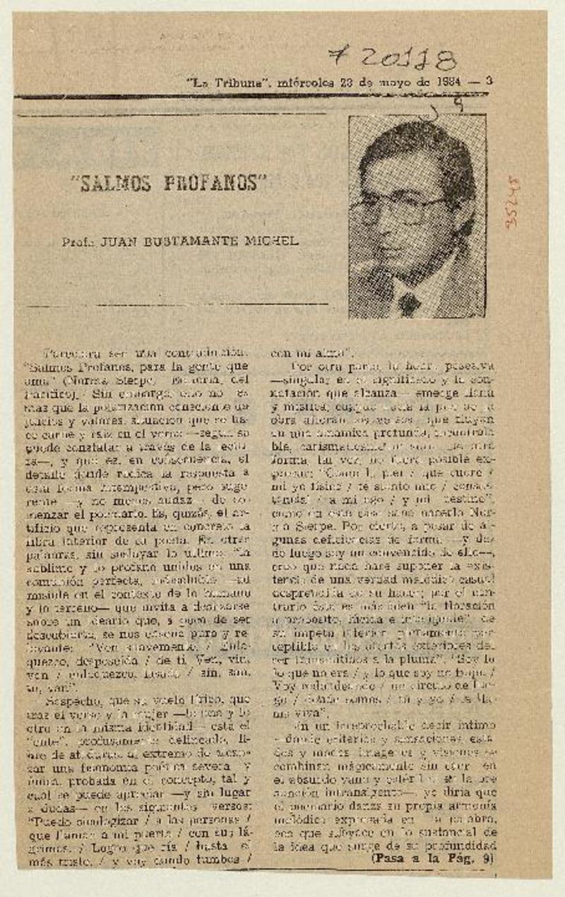 Salmos profanos" [artículo] Juan Bustamante Michel.