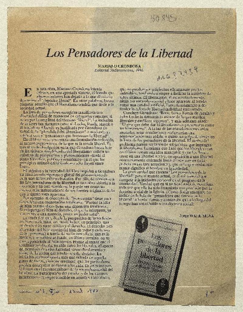 Los pensadores de la libertad [artículo] Jorge Wahl Silva.