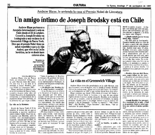 Un amigo íntimo de Joseph Brodsky está en Chile [artículo] Maura Brescia.