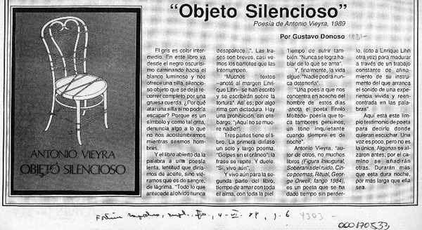 "Objeto silencioso" [artículo] Gustavo Donoso.