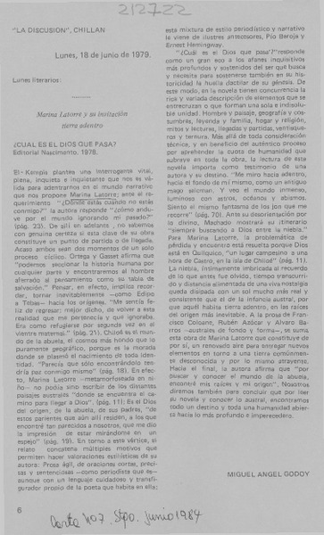 "Cuál es el Dios que pasa?" [artículo] Miguel Angel Godoy.