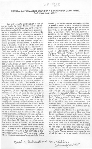 Neruda, la formación, creación y gravitación de un Nobel [artículo] Miguel Angel Godoy.