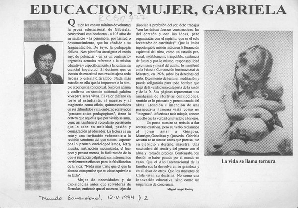 Educación, mujer, Gabriela [artículo] Miguel Angel Godoy.
