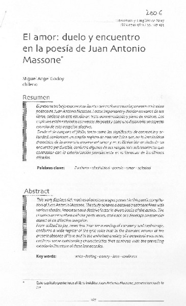 El sentido religioso en la poesía de Juan Antonio Massone [artículo] Miguel Ángel Godoy.