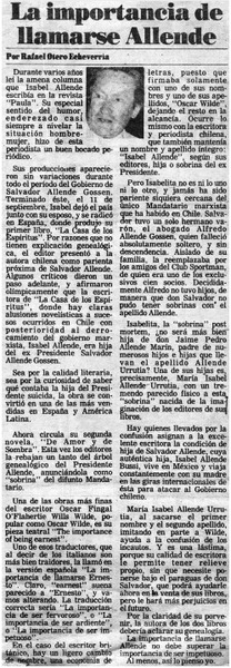 La importancia de llamarse Allende [artículo] Rafael Otero Echeverría.