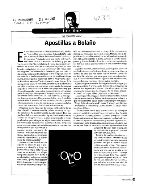 Apostillas a Bolaño [artículo] Francisco Mouat.
