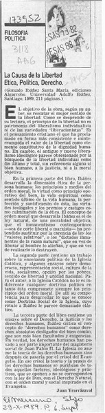 La causa de la libertad, ética, política, derecho [artículo] Juan Yrarrázaval.
