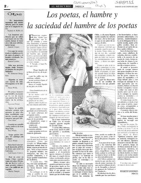 Los poetas, el hambre y la saciedad del hambre de los poetas [artículo] Marco Antonio Pinto.