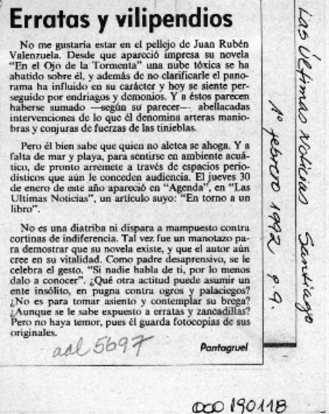 Erratas y vilipendios [artículo] Pantagruel.