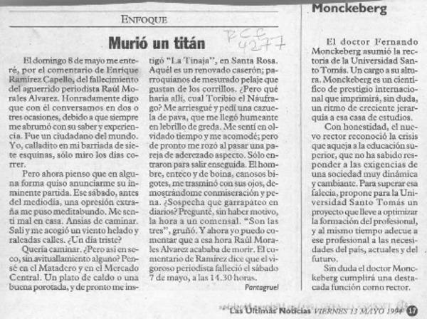 Murió un titán [artículo] Pantagruel.