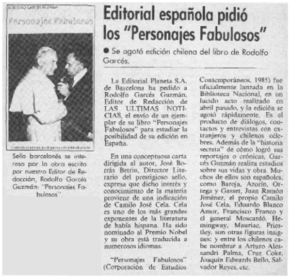 Autores chilenos - Garcés Guzmán, Rodolfo - Personajes fabulosos