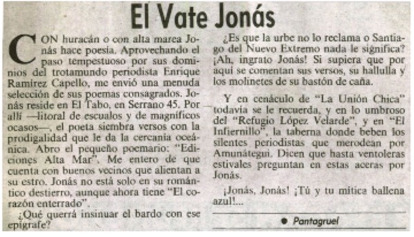El vate Jonás [artículo] Pantagruel.