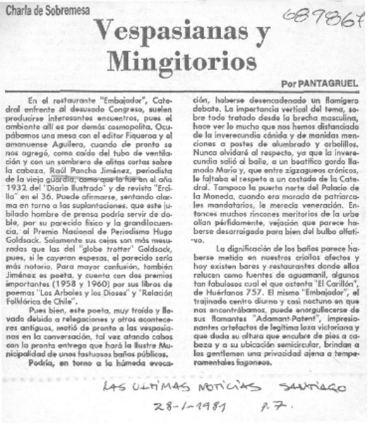 Una charla crepuscualar [artículo] Pantagruel.