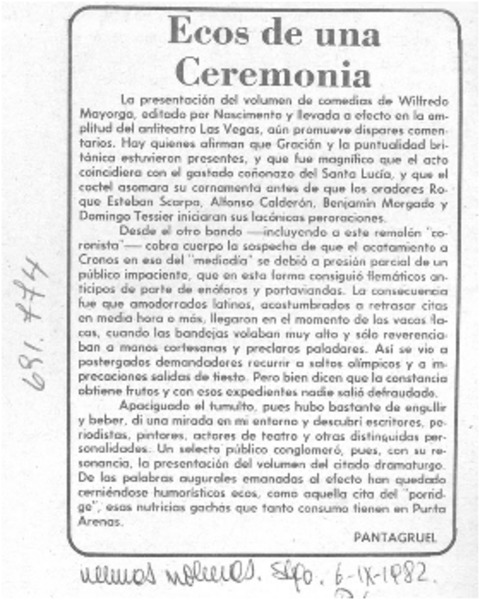 Ecos de una ceremonia [artículo] Pantagruel.