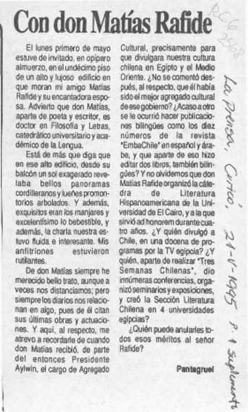 Con don Matías Rafide [artículo] Pantagruel.
