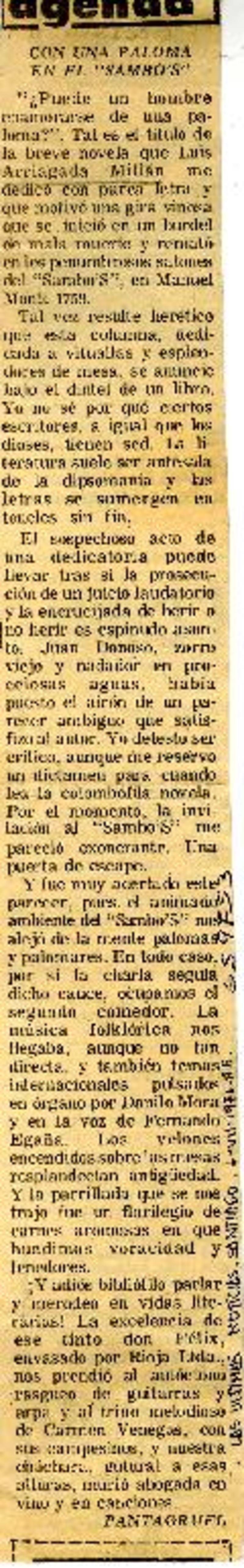 Con una paloma en el "Sambo S". [artículo] Pantagruel.