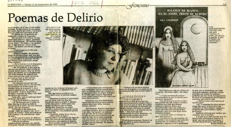 Autoras chilenas - Entrevistas - Calderón, Lila - Balance de blanco en el ángel triste de Durero