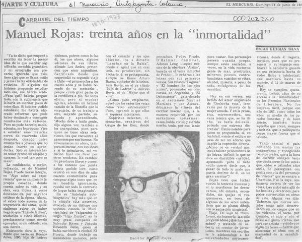 Manuel Rojas, treinta años en la "inmortalidad" [artículo] Oscar Guzmán Silva.