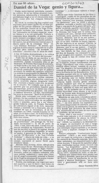 Daniel de la Vega, genio y figura... [artículo] Oscar Guzmán Silva.
