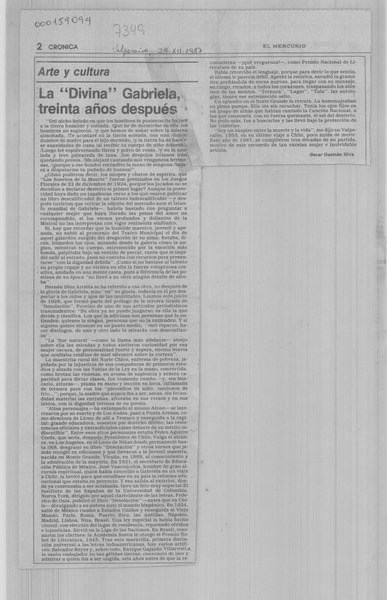 La "Divina" Gabriela, treinta años después [artículo] Oscar Guzmán Silva.