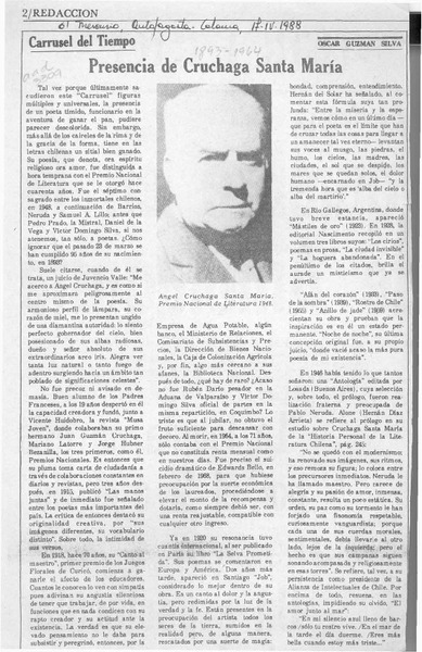 Presencia de Cruchaga Santa María [artículo] Oscar Guzmán Silva.