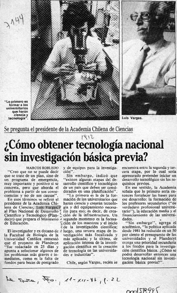 Cómo obtener tecnología nacional sin investigación básica previa? [artículo] Marcos Robledo.